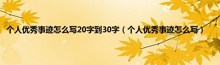 以上就是【个人优秀事迹怎么写20字到30字,个人优秀事迹怎么写】相关内容。