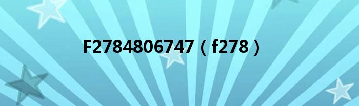 大家好,小问来为大家解答以上问题。F2784806747,f278这个很多人还不知道,现在让我们一起来看看吧!