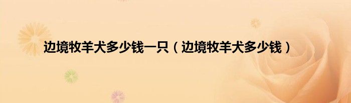 以上就是【边境牧羊犬多少钱一只,边境牧羊犬多少钱】相关内容。