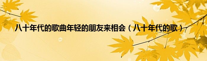 大家好,小问来为大家解答以上问题。八十年代的歌曲年轻的朋友来相会,八十年代的歌这个很多人还不知道,现在让我们一起来看看吧!