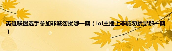 本文,英雄联盟选手参加非诚勿扰哪一期,lol主播上非诚勿扰是那一期到此就分享完毕,希望对大家有所帮助。
