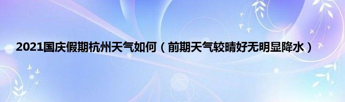 本文,2021国庆假期杭州天气如何,前期天气较晴好无明显降水到此就分享完毕,希望对大家有所帮助。