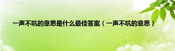 本文,一声不吭的意思是什么最佳答案,一声不吭的意思到此就分享完毕,希望对大家有所帮助。