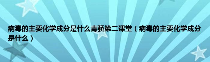 大家好,病毒的主要化学成分是什么青骄第二课堂,病毒的主要化学成分是什么很多人还不知道,现在让我们一起来看看吧!