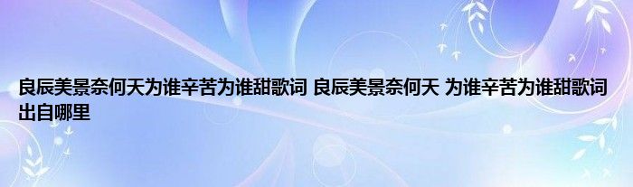歌词良辰美景奈何天 为谁辛苦为谁甜出自王菲的《致青春》。