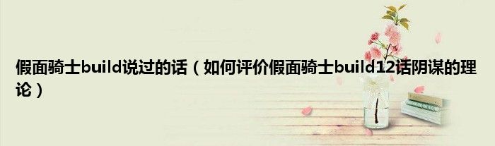 本文,假面骑士build说过的话,如何评价假面骑士build12话阴谋的理论到此就分享完毕,希望对大家有所帮助。