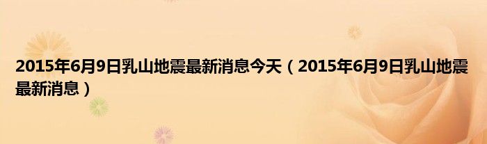 大家好,2015年6月9日乳山地震最新消息今天,2015年6月9日乳山地震最新消息很多人还不知道,现在让我们一起来看看吧!