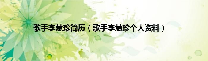 本文,歌手李慧珍简历,歌手李慧珍个人资料到此就分享完毕,希望对大家有所帮助。