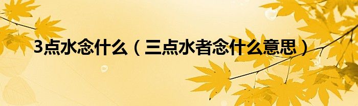 3点水念什么(三点水者念什么意思)