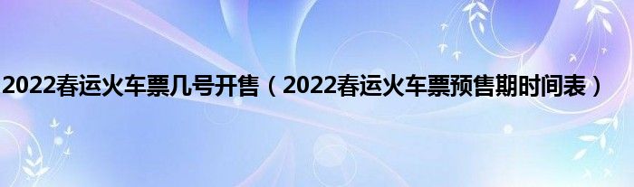本文,2022春运火车票几号开售,2022春运火车票预售期时间表到此就分享完毕,希望对大家有所帮助。