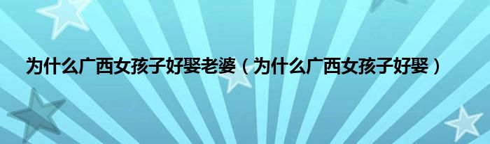 以上就是【为什么广西女孩子好娶老婆,为什么广西女孩子好娶】相关内容。