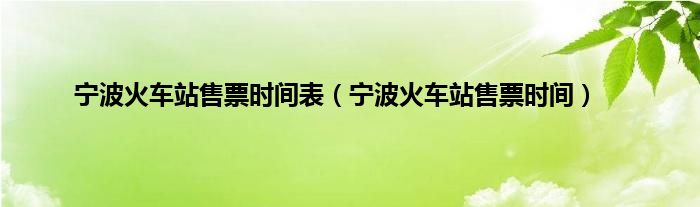 以上就是【宁波火车站售票时间表,宁波火车站售票时间】相关内容。