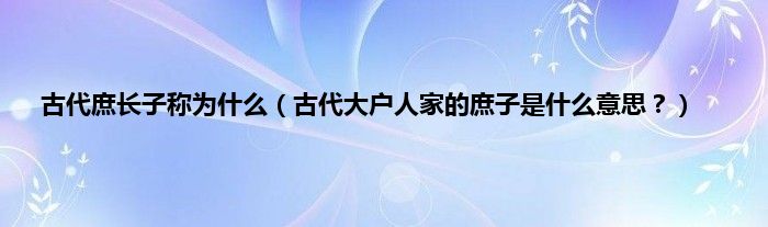 本文,古代庶长子称为什么,古代大户人家的庶子是什么意思?到此就分享完毕,希望对大家有所帮助。